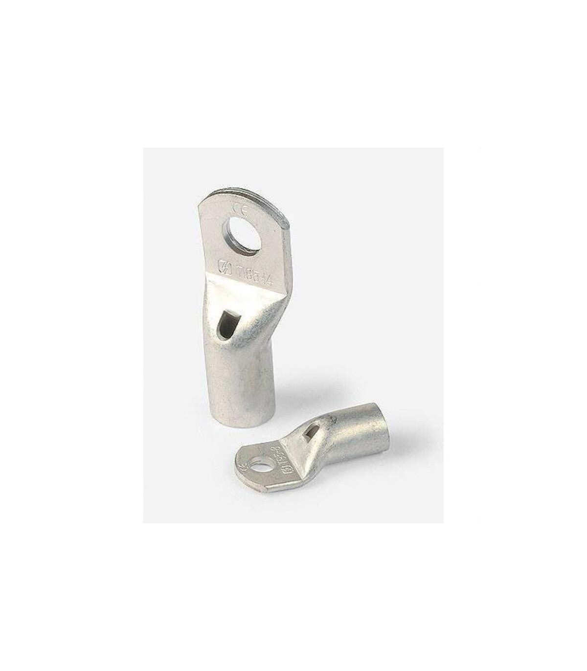 Les cosses en T sont fabriquées en cuivre électrolytique avec une finition étamée pour optimiser le contact électrique. Elles comportent un orifice de contrôle permettant de vérifier le bon positionnement du câble. Conformes à la norme IEC 61238-1. T-50/8. La cosse en cuivre Sofamel T-50/8, référence 010510, est conçue pour des connexions électriques sûres et durables dans les installations basse tension. Fabriquée en cuivre électrolytique de haute pureté, cette cosse offre une excellente conductivité électrique. Sa surface étamée améliore le contact électrique et protège contre la corrosion, notamment dans les environnements industriels exigeants. Elle est également dotée d'un orifice de contrôle permettant de vérifier visuellement le bon positionnement du câble lors de l'installation, conformément à la norme IEC 61238-1-1.
