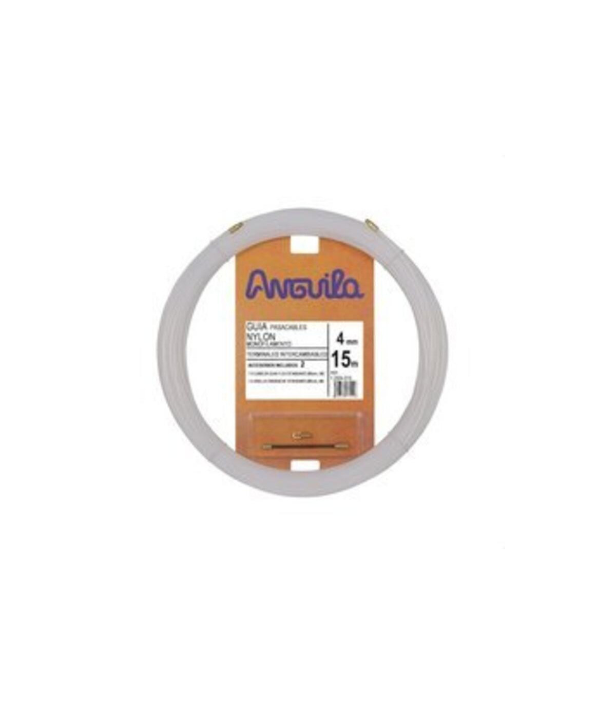 Tire-câble monofilament en nylon naturel de 4 mm de diamètre et 15 mètres de long, équipé d'embouts interchangeables, d'une tête de guidage flexible de 6 mm de diamètre et d'un anneau de traction fixe de 6 mm de diamètre. Le nylon possède un fort effet mémoire, ce qui augmente les points de friction et crée un mouvement spiralé unique réduisant l'effort de traction. Son utilisation est donc déconseillée pour des distances supérieures à 20 ou 25 mètres. Le tire-câble Anguila 12004015 est un outil flexible et résistant, fabriqué en nylon de haute qualité. D'un diamètre de 4 mm et d'une longueur de 15 mètres, il est idéal pour faciliter le passage des câbles dans les installations électriques. Sa conception robuste et modulable lui permet de s'adapter à différents diamètres de conducteurs et aux cheminements complexes, garantissant un tirage de câble fluide et sûr. Sa couleur naturelle facilite son identification et contribue à sa polyvalence d'utilisation dans les environnements domestiques et industriels.