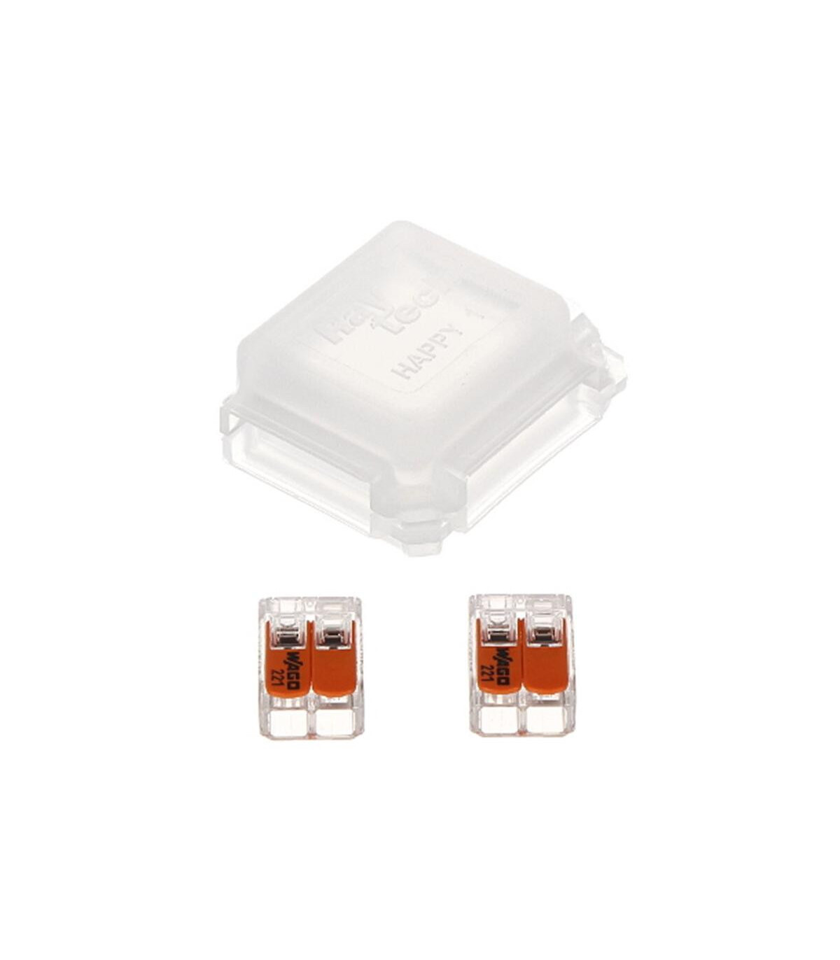 Kits complets : Boîtes de jonction étanches avec gel intégré et connecteurs inclus (HAPPY JOINT). Dotées de trois entrées de câble, ces boîtes, une fois la connexion effectuée, encapsulent les bornes dans le gel, assurant une protection IPX8 et permettant même l'immersion. Disponibles en trois tailles et quatre modèles pour câbles isolés, rigides ou souples jusqu'à 4 mm². Boîte de jonction étanche Raytech HAPPYJOINT4 45 x 37 x 24 mm pour deux connecteurs 2 x 4 mm² (emballage blister de 2).