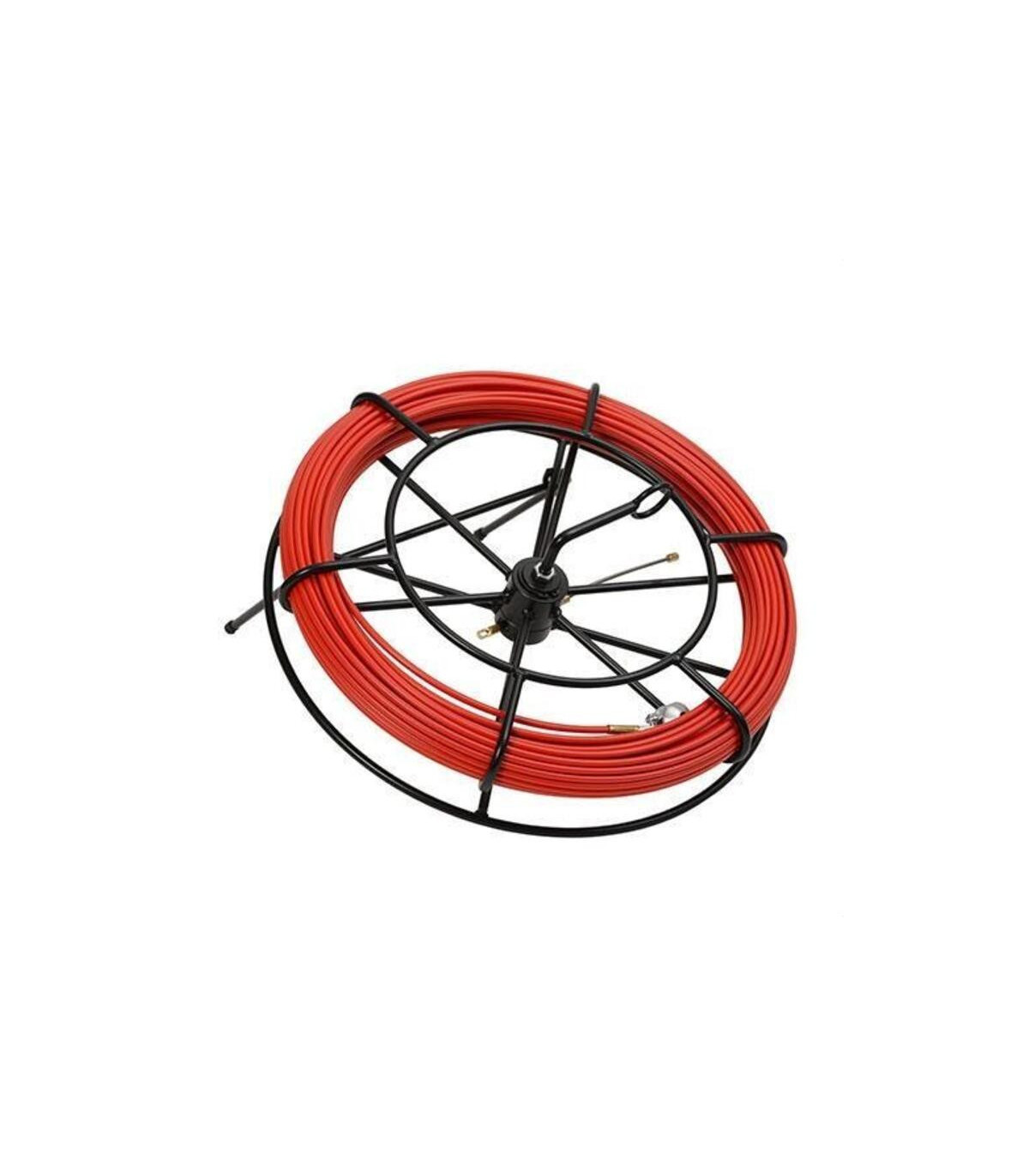 Guide-câble en feuillard d'acier de 50 mètres de long et de 6 mm de diamètre, protégé par une gaine en polypropylène rouge haute résistance. Équipé de bornes interchangeables et d'accessoires inclus : tête de guidage flexible de 8 mm de diamètre, rouleau en aluminium de 30 mm de diamètre et anneau de fixation en laiton de 8 mm de diamètre. Livré dans un coffret métallique H450 avec anneau de guidage, frein de sécurité et porte-accessoires. Le feuillard en acier présente un faible effet mémoire et est idéal pour les applications exigeantes, offrant une excellente résistance au frottement. Sa structure plate améliore la rotation et offre un équilibre optimal entre flexibilité et rigidité pour une force de traction efficace. Le guide-câble 20602050 est conçu pour offrir une solution robuste et fiable pour les installations électriques et de télécommunications. Fabriqué en acier et nylon de haute qualité, il allie rigidité et flexibilité, permettant un acheminement fluide des câbles.