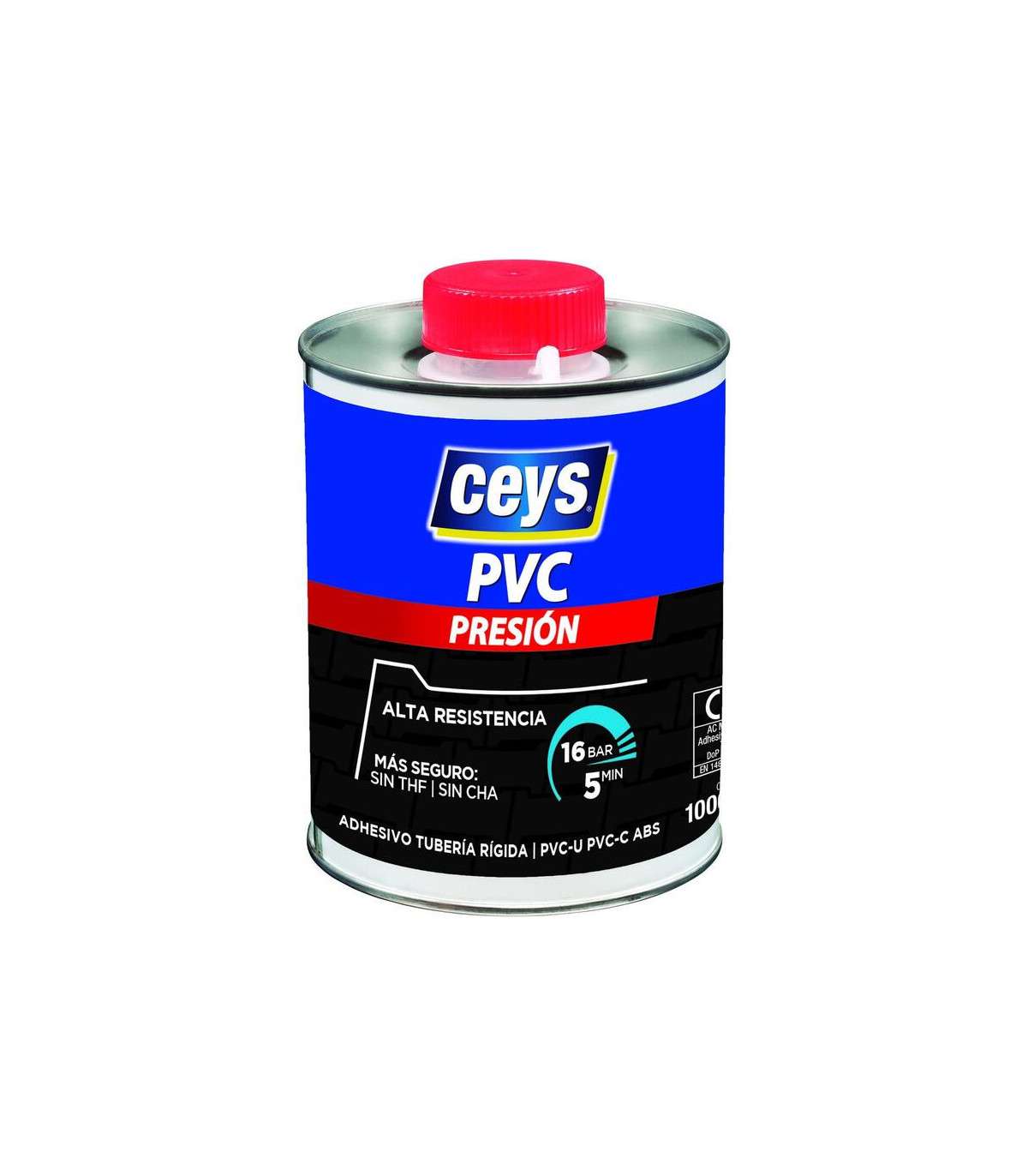 Colle CEYS 1000 ml pour tuyaux PVC rigides sous pression (flacon avec applicateur pinceau), pour tuyaux PVC rigides utilisés dans les applications d'eau, de gaz, etc., soumis à la pression. Elle résiste à une pression jusqu'à 49,2 kg/cm², soit la même que le tuyau lui-même. Séchage rapide permettant un collage continu. Conforme aux normes UNE 53174 et UNE 53175. Plus sûre, elle ne contient pas de THF, permettant une utilisation quotidienne sans risque pour la santé. Pour le montage et la réparation des réseaux de distribution et d'alimentation en PVC sous pression, des systèmes d'adduction et de distribution d'eau, d'irrigation et des installations agricoles. Convient aux tuyaux pneumatiques sous pression. La colle CEYS 900211 est spécialement formulée pour assembler les tuyaux et raccords PVC rigides sous pression, garantissant des joints solides, durables et étanches. Présentée en flacon de 1 litre avec applicateur pinceau, elle permet une application précise et pratique, réduisant le gaspillage et facilitant le travail dans les espaces complexes ou difficiles d'accès. Cette colle est caractérisée par…