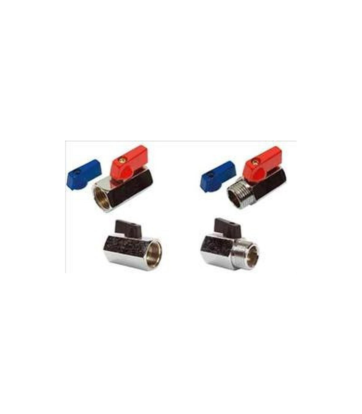 Mini-vannes pour raccords. Dimensions : 3/8" HH. Poids : 65 g. Vannes à bille chromées compactes. Raccord mâle-femelle. Cette mini-vanne est conçue pour les collecteurs avec raccord mâle-femelle 3/8". Fabriquée avec des matériaux durables, elle garantit longévité et fiabilité dans les systèmes d'eau et de chauffage. Sa conception compacte facilite l'installation dans les espaces restreints et assure un contrôle précis du débit. Idéale pour les installations domestiques et industrielles, elle assure une étanchéité parfaite et simplifie la maintenance des collecteurs.
