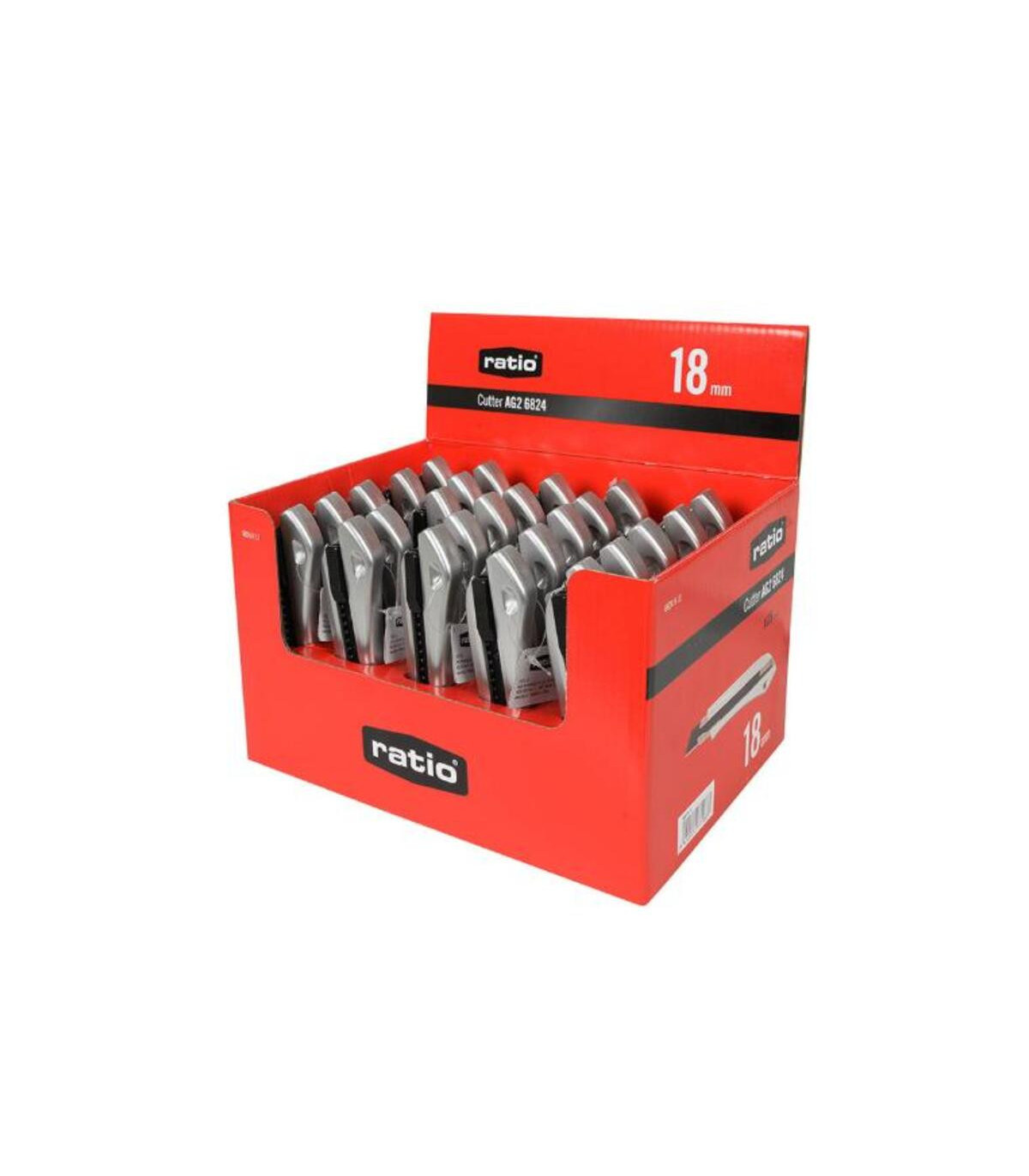 Manche en ABS avec guides internes en acier inoxydable. Lame SK-2 de 18 mm avec traitement spécial (pour un meilleur affûtage). Présentoir de 25 unités.