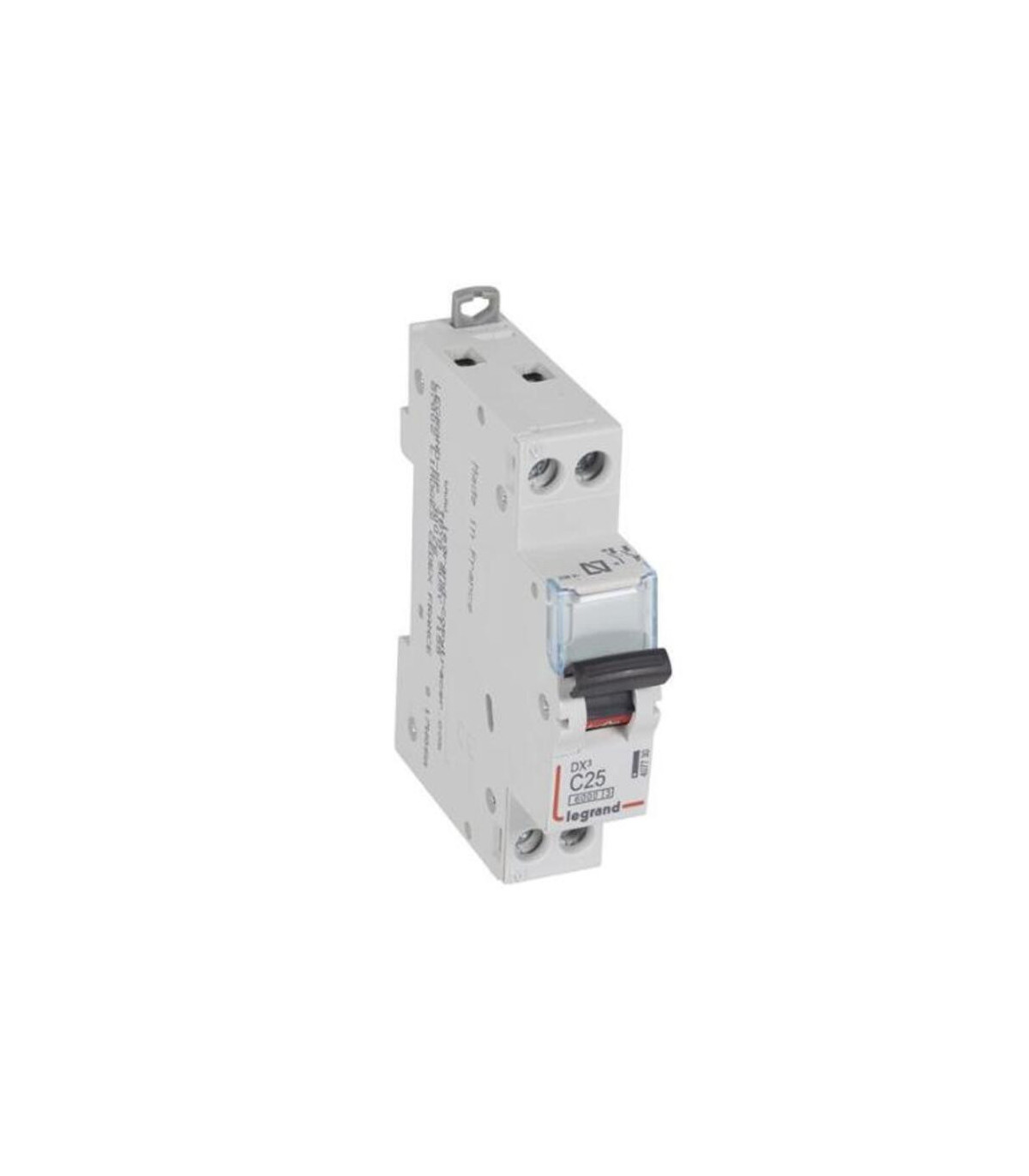 Disjoncteur monophasé + neutre DX3 6/10 kA C25 à 1 module. Uniphasé + neutre 230 V~ - Courbe C - Courant nominal : 25 A - Nombre de modules : 1. Disjoncteur miniature DX³ 6000 - 10 kA - de 1 A à 63 A - courbes C, B et D - Compatible avec les barres omnibus unipolaires et multipolaires. Pouvoir de coupure : - 6000 - IEC 60898-1 - 400 V~ - 10 kA - IEC 60947-2 - 400 V~ - Produits avec marquage N (sauf 1P+N 2 modules et courbe B) - Peut être équipé de dispositifs différentiels résiduels, de commandes motorisées et d'auxiliaires de commande et de signalisation DX³ - Porte-étiquette intégré. Le disjoncteur Legrand DX3 réf. Le modèle 407730 est un disjoncteur conçu pour les installations électriques résidentielles, commerciales et industrielles. De configuration monopolaire + neutre (1P+N), avec un courant nominal de 25 A et une courbe de déclenchement de type C, ce dispositif assure une protection efficace contre les surcharges et les courts-circuits, avec un pouvoir de coupure de 6 kA selon la norme IEC 60898-1 et de 10 kA selon la norme IEC 60947-2.