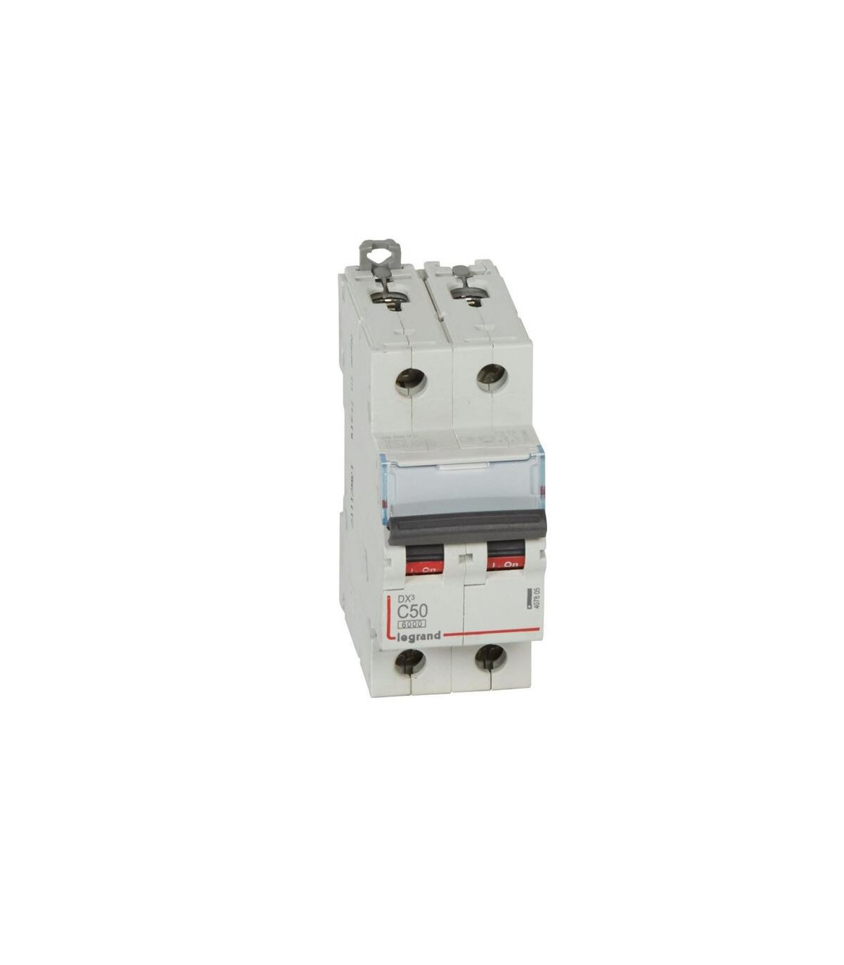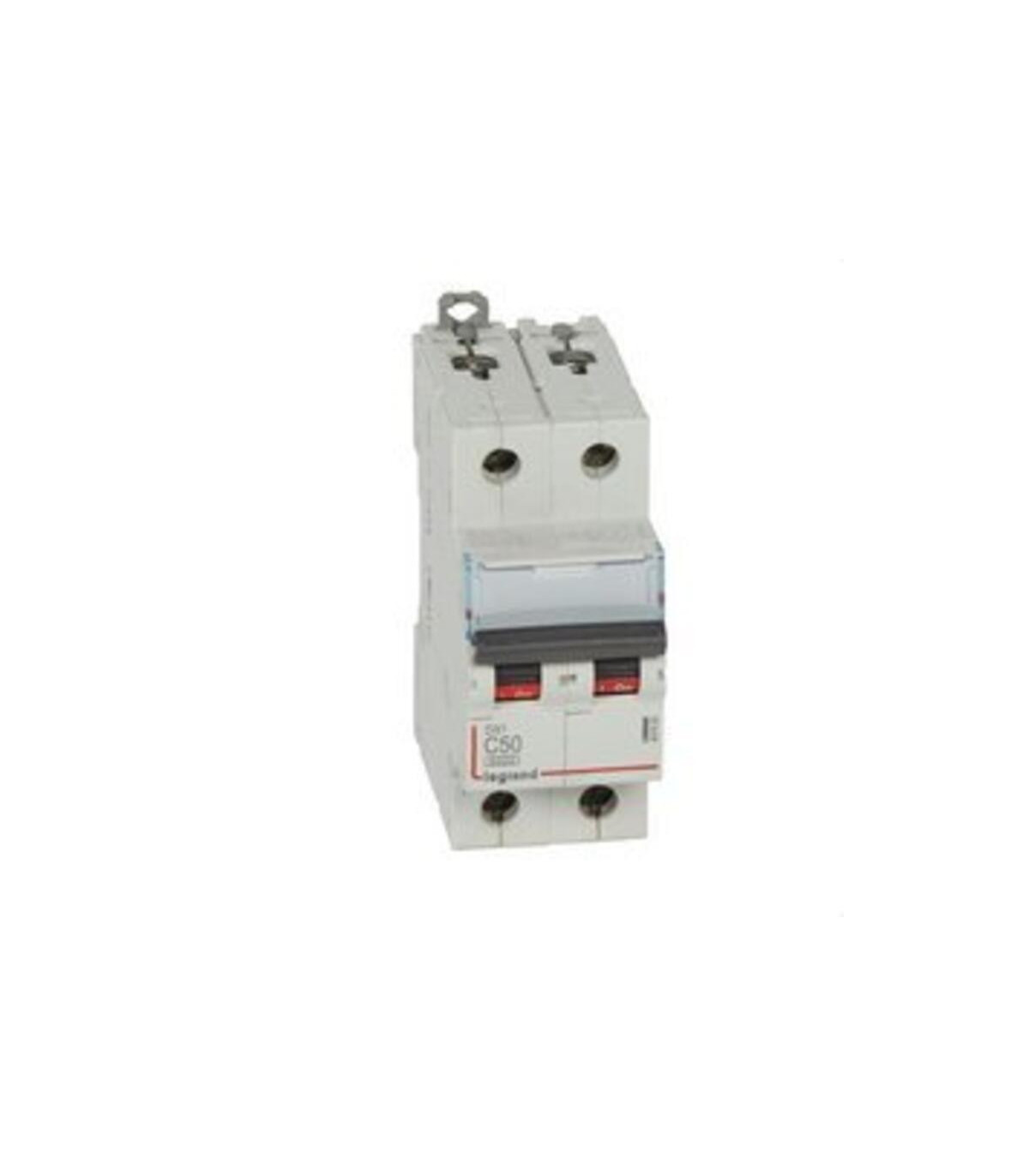 Disjoncteur miniature bipolaire DX3 6/10KA-C 50 A. 230/400 V~ - Courbe C - Courant nominal : 50 A - Nombre de modules : 2. Disjoncteur miniature DX³ 6000 - 10 kA - Disjoncteurs miniatures de 1 A à 63 A - Courbes C, B et D - Compatible avec les barres omnibus unipolaires et multipolaires. Pouvoir de coupure : - 6000 - IEC 60898-1 - 400 V~ - 10 kA - IEC 60947-2 - 400 V~ - Produits avec marquage N (sauf 1P+N 2 modules et courbe B) - Peut être équipé de blocs différentiels, de commandes motorisées et d'auxiliaires de commande et de signalisation DX³ - Porte-étiquette intégré.