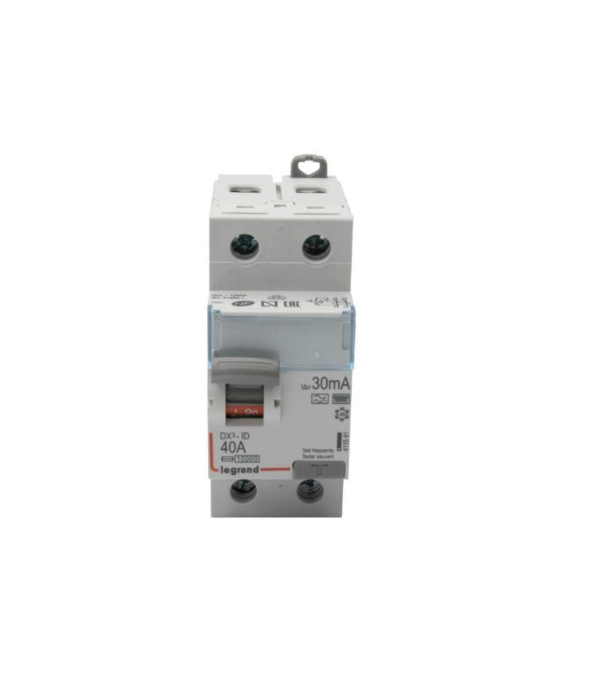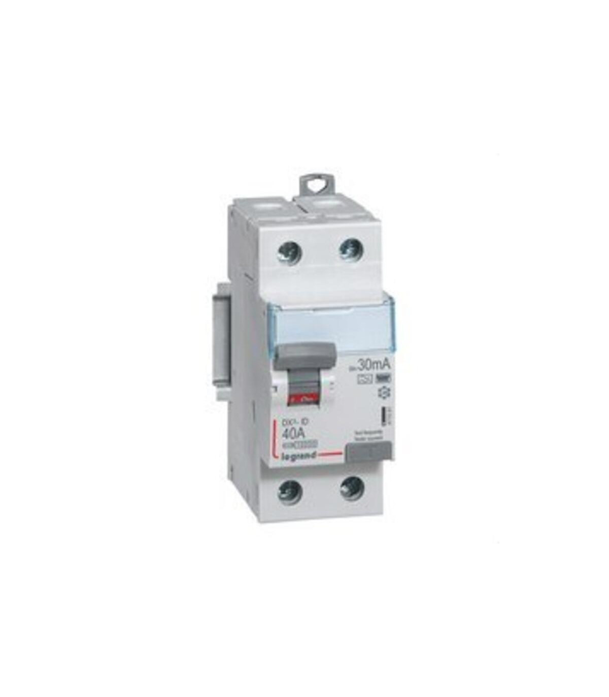 Disjoncteur différentiel DX3 2/40/30HPI. Bipolaire 230 V~ Type HPI - Sensibilité : 30 mA - Intensité : 40 A - Nombre de modules : 2. Disjoncteurs différentiels DX³-ID - entrée supérieure/sortie inférieure - Conformes à la norme UNE EN 61008-1 - Type AC : détecte les défauts des composants AC - Type A : détecte les défauts des composants AC et DC (circuits spécialisés : cuisinières, plaques de cuisson, lave-linge, etc.) - Type HPI : détecte les défauts des composants AC et DC (Type A) avec une immunité renforcée aux déclenchements intempestifs (environnements perturbés : circuits informatiques, foudre, lampes fluorescentes, etc.) - Type B : détecte les défauts des composants AC et DC et les défauts DC sans ondulation (machines à vitesse variable, installations photovoltaïques, centres d’appels, équipements médicaux, etc.) - Convient aux disjoncteurs auxiliaires, aux commandes motorisées et aux modules de connexion DX³ (sauf Type B) - Fixation par vis/boulon :