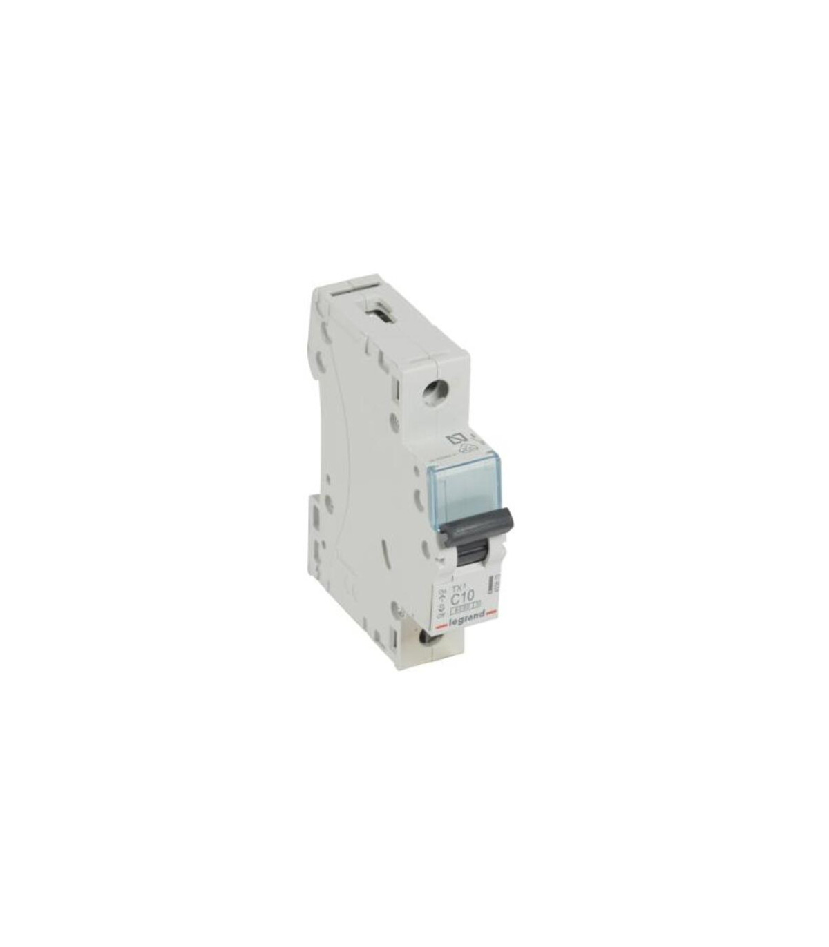 Disjoncteur unipolaire TX3 6KA-C 10 A. Disjoncteur unipolaire TX³ 230/400 V~ - Courbe C - Courant nominal : 10 A - Nombre de modules : 1. Disjoncteurs TX³ - Disjoncteurs de 6 A à 40 A - Courbe C - Pouvoir de coupure de 6 000 A - Conforme à la norme UNE EN 60898-1 - Connexion avec bornes protégées contre les contacts directs (IP20) - Vis imperdables - Porte-étiquette intégré - Capacité des bornes : 25 mm² souple / 35 mm² rigide - Peut être équipé de commandes motorisées et de dispositifs auxiliaires de commande et de signalisation DX³. Le disjoncteur Legrand TX³, réf. 403575, est un disjoncteur unipolaire de 10 A conçu pour protéger les installations électriques contre les surcharges et les courts-circuits. Il fonctionne à une tension nominale de 230/400 V~, possède une courbe d'amorçage en C (idéale pour les charges résistives et inductives) et une capacité de coupure de 6 kA, conforme à la norme UNE EN-60898-1.