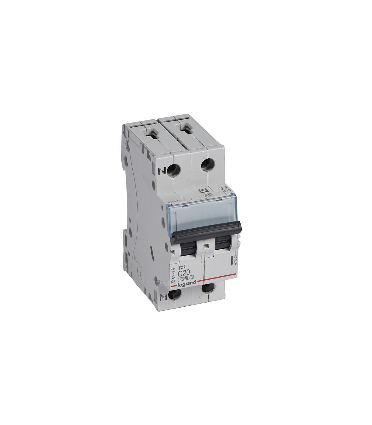 Disjoncteur unipolaire + neutre TX3 6 kA-C 20 A. Disjoncteur unipolaire + neutre TX³ 230 V~ - Courbe C - Courant nominal : 20 A - Nombre de modules : 2. Disjoncteurs TX³ - Disjoncteurs de 6 A à 40 A - Courbe C - Pouvoir de coupure de 6 000 A - Conforme à la norme UNE EN 60898-1 - Connexion avec bornes protégées contre les contacts directs (IP20) - Vis imperdables - Porte-étiquette intégré - Capacité des bornes : 25 mm² souple / 35 mm² rigide - Peut être équipé de commandes motorisées et de dispositifs auxiliaires de commande et de signalisation DX³. Le disjoncteur Legrand TX3 6 kA CP + N 20 A est un dispositif de protection électrique conçu pour assurer la sécurité des installations contre les surcharges et les courts-circuits. Sa configuration CP + N permet la protection des conducteurs de phase et de neutre, garantissant un fonctionnement sûr et fiable dans les circuits électriques résidentiels, commerciaux ou industriels. Avec un pouvoir de coupure de 6 kA et un courant nominal de 20 A, il offre une protection...