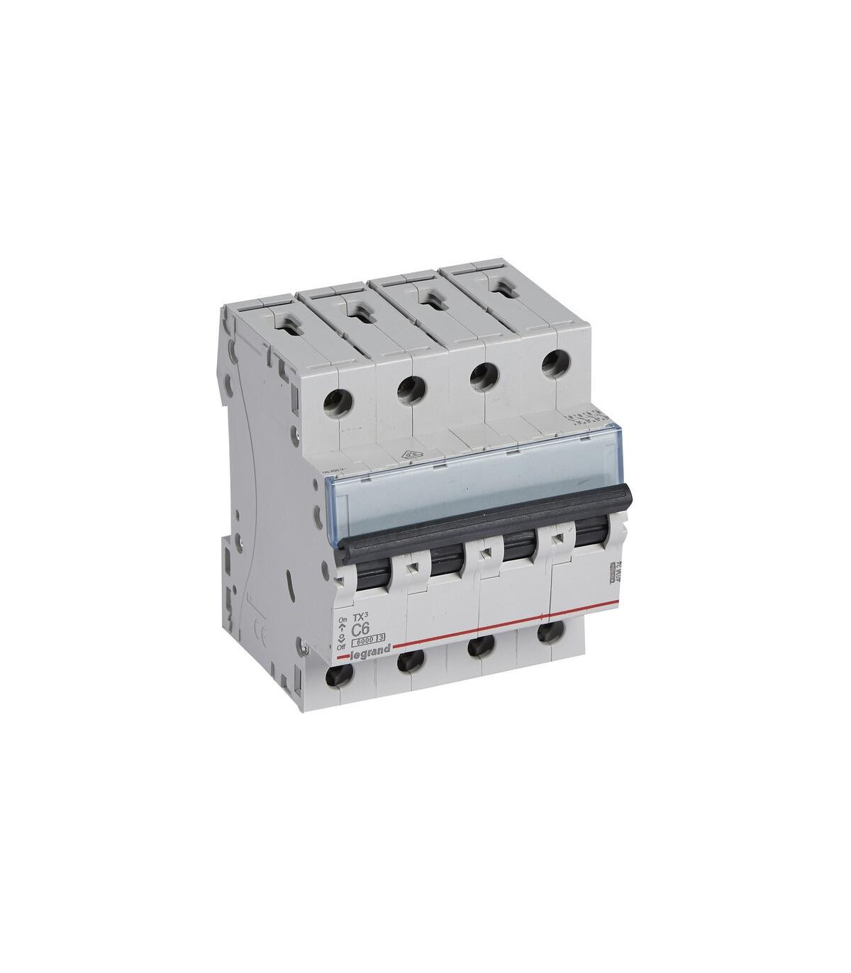 Disjoncteur TX3 6KA-C 4 pôles 6 A. Disjoncteur TX³ 400 V~ à quatre pôles - Courbe de déclenchement en C - Courant nominal : 6 A - Nombre de modules : 4. Disjoncteurs TX³ - Disjoncteurs de 6 A à 40 A - Courbe de déclenchement en C - Pouvoir de coupure de 6 000 A - Conforme à la norme UNE EN 60898-1 - Connexion avec bornes protégées contre les contacts directs (IP20) - Vis imperdables - Porte-étiquette intégré - Capacité des bornes : 25 mm² souple / 35 mm² rigide - Peut être équipé de commandes motorisées et de dispositifs auxiliaires de commande et de signalisation DX³. Le disjoncteur Legrand TX3 403624 est un disjoncteur 4 pôles à courbe de déclenchement en C et d'un pouvoir de coupure de 6 kA, conçu pour protéger les installations électriques contre les surcharges et les courts-circuits. Avec un courant nominal de 6 ampères, il est idéal pour les applications triphasées nécessitant une protection précise et fiable. Sa conception compacte et modulaire facilite le montage dans les panneaux électriques standard.