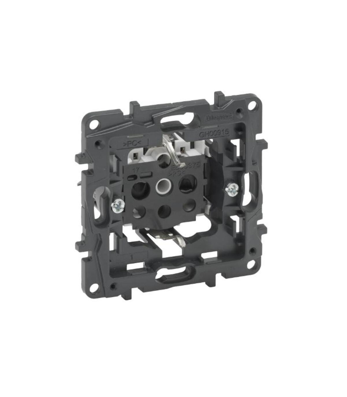 Prise de courant 2P+T 10/16 A - 250 V~ - Avec prises protégées - Bornes à vis - À monter avec façade et plaque de finition - Montage encastré ou en saillie - Fixation par vis ou clips (fournis avec le mécanisme) - Fournie avec une protection plastique pour la protection du mécanisme lors de l'installation. La prise de courant Legrand Niloé Step réf. 864021 est une prise Schuko 2P+T, conçue pour les installations électriques domestiques et professionnelles. Elle supporte un courant de 16 A et une tension de 250 V~, et est équipée de bornes à vis, assurant une connexion sûre et robuste. Elle est dotée de prises protégées pour une sécurité accrue et est fournie avec une protection plastique pour protéger le mécanisme lors de l'installation.