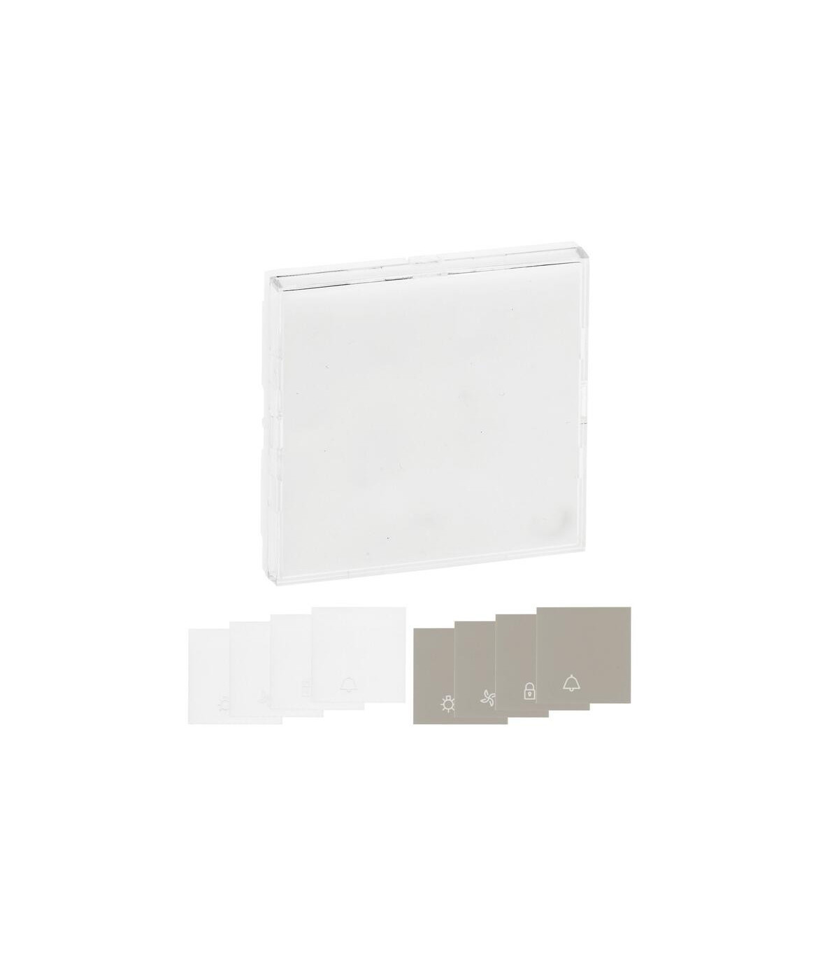 Le porte-étiquette Legrand Niloé Step, avec sonnette intégrée, pour interrupteurs et bascules, en blanc mat, est un accessoire conçu pour faciliter l'identification des mécanismes électriques. Son système de fixation directe sur le support du mécanisme permet une installation simple et sans outil. Il est doté d'étiquettes pour lampe, sonnette et cadenas, facilitant ainsi l'identification de la fonction de l'interrupteur ou de la bascule. Fabriqué en thermoplastique de haute qualité sans halogène, il garantit robustesse et durabilité. Sa finition blanc mat lui confère un aspect moderne et élégant, idéal pour tous les environnements. Conforme à l'indice de protection IP20 et à la résistance aux chocs IK04, il convient aux installations sûres et fiables. Ses dimensions (50,5 mm de large, 50 mm de haut et 11,4 mm de profondeur) permettent une intégration discrète dans tous les espaces. De plus, les commandes peuvent être facilement éclairées.