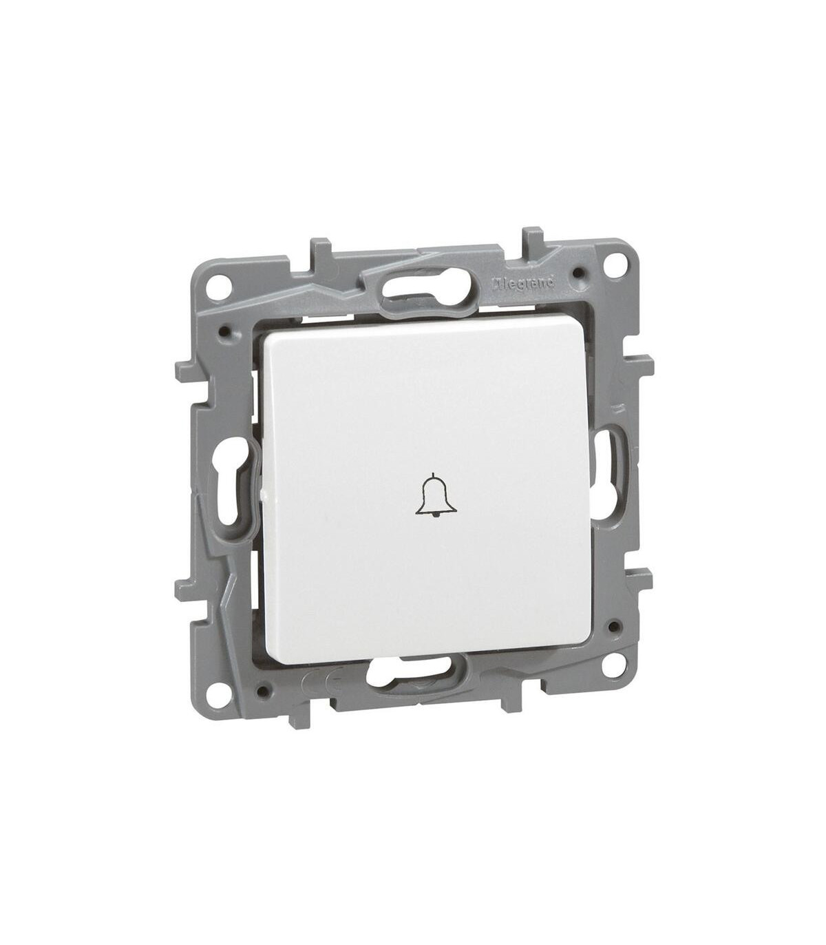 Bouton-poussoir lumineux blanc NILOE 6A 250V. Boutons-poussoirs 6A - 250V~. Bouton-poussoir lumineux avec pictogramme NO - NC - Comprend une lampe LED réf. 6 650 90 et des pictogrammes intégrés « sonnette », « cadenas » et « ampoule ». Boutons-poussoirs Niloé - Le mécanisme comprend une plaque de recouvrement et un support - À utiliser avec des plaques de recouvrement - Montage encastré ou en saillie - Fixation par vis ou par griffes à l'aide des accessoires de fixation réf. 6 650 99 - Livré avec un capuchon de protection. Le bouton-poussoir lumineux blanc Legrand Niloé 6A 250V, référence 664715, est conçu pour commander efficacement un circuit électrique, offrant une indication visuelle de son état par un éclairage, pour une sécurité et un confort accrus dans les installations résidentielles et commerciales. Fabriqué avec des matériaux de haute qualité, il garantit durabilité, résistance à l'usage quotidien et performances constantes. Sa finition blanche lui confère un design élégant et moderne qui s'intègre parfaitement à tous les environnements.