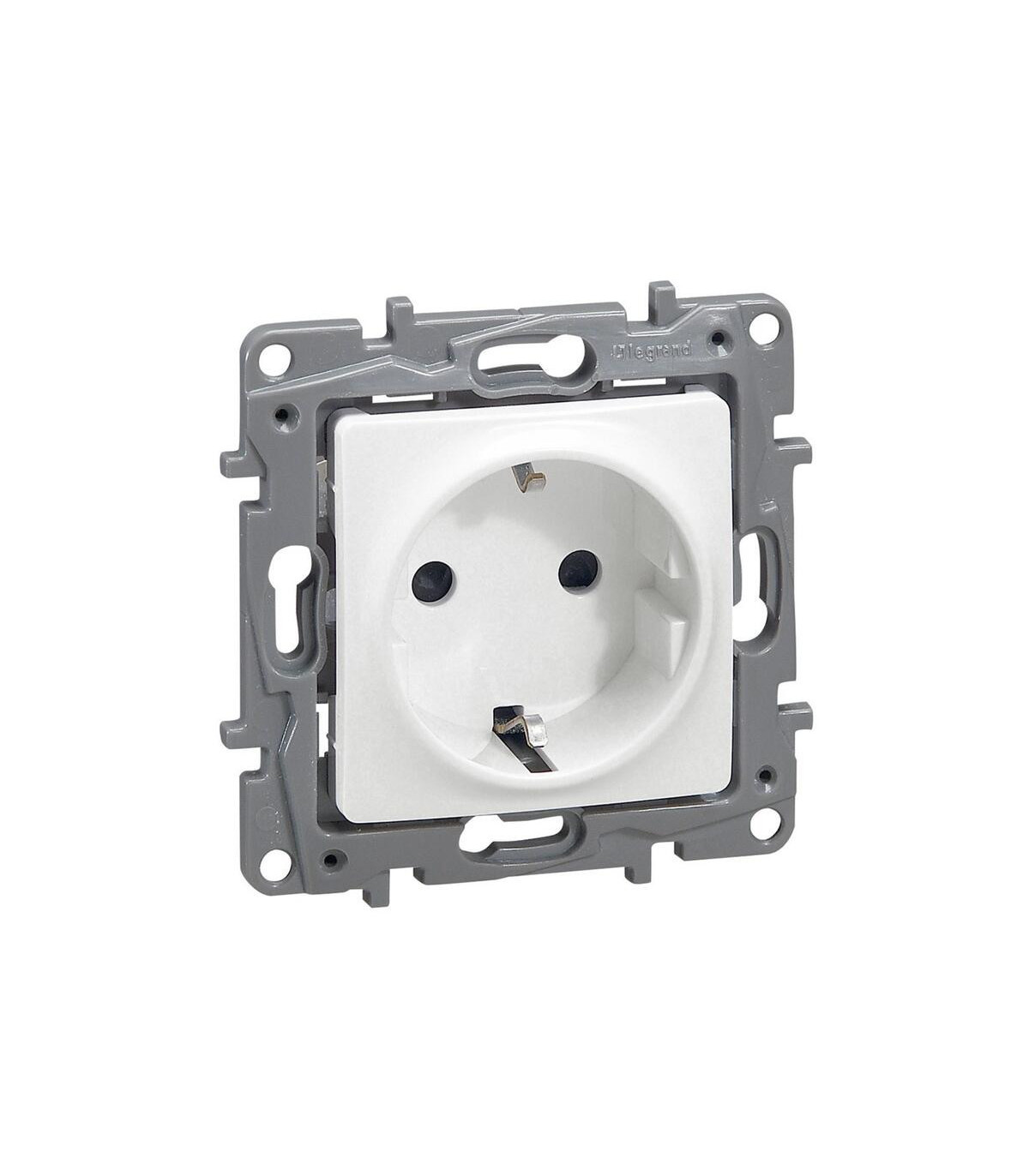 Prise Niloe 2 pôles + terre avec protection automatique contre les courts-circuits, blanche. Prises de courant avec protection de sécurité 2P+T - Bornes automatiques - Blanches. Niloe - Prises de courant - Le mécanisme comprend une plaque de recouvrement et un support - À utiliser avec des plaques de recouvrement - Fixation par vis - Fixation par griffes avec l'accessoire réf. 6 650 99 - Fournie avec protecteur. La prise Legrand Niloe 2P + TT avec protection automatique contre les courts-circuits, blanche, référence 664731, est conçue pour offrir sécurité et fonctionnalité dans les installations électriques résidentielles et commerciales. Fabriquée avec des matériaux de haute qualité, elle garantit durabilité, résistance à une utilisation quotidienne et performances fiables. Son système de protection automatique contre les courts-circuits protège contre les contacts accidentels et les surcharges, assurant un fonctionnement sûr et fiable en toutes circonstances. Cette prise Niloe est idéale pour les professionnels et les particuliers recherchant praticité, sécurité et efficacité dans leurs installations.