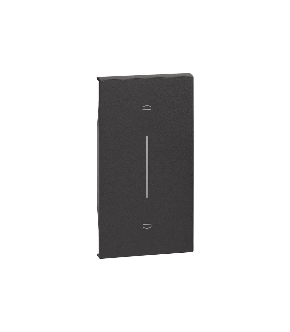 Clé de commande Living Now. Symbole stores. À utiliser avec un bouton-poussoir double à verrouillage mécanique, référence : K4037. 2 modules. Couleur foncée. La clé de commande Living Now 2 modules de Bticino est conçue pour une commande efficace des stores et rideaux motorisés dans les installations résidentielles. Compatible avec la référence K4037, elle permet de monter, descendre ou arrêter les stores facilement et en toute sécurité, et s'intègre parfaitement aux autres éléments de la gamme Living Now. Sa conception à 2 modules facilite l'installation et assure la compatibilité avec les mécanismes standards de la gamme. Fabriquée avec des matériaux de haute qualité et une finition foncée, cette clé offre une grande durabilité et une excellente résistance à l'usage quotidien. Son installation est simple dans les boîtiers standards, et son esthétique moderne allie fonctionnalité et élégance, offrant un produit fiable et esthétique pour la commande de stores dans tout environnement résidentiel ou commercial.