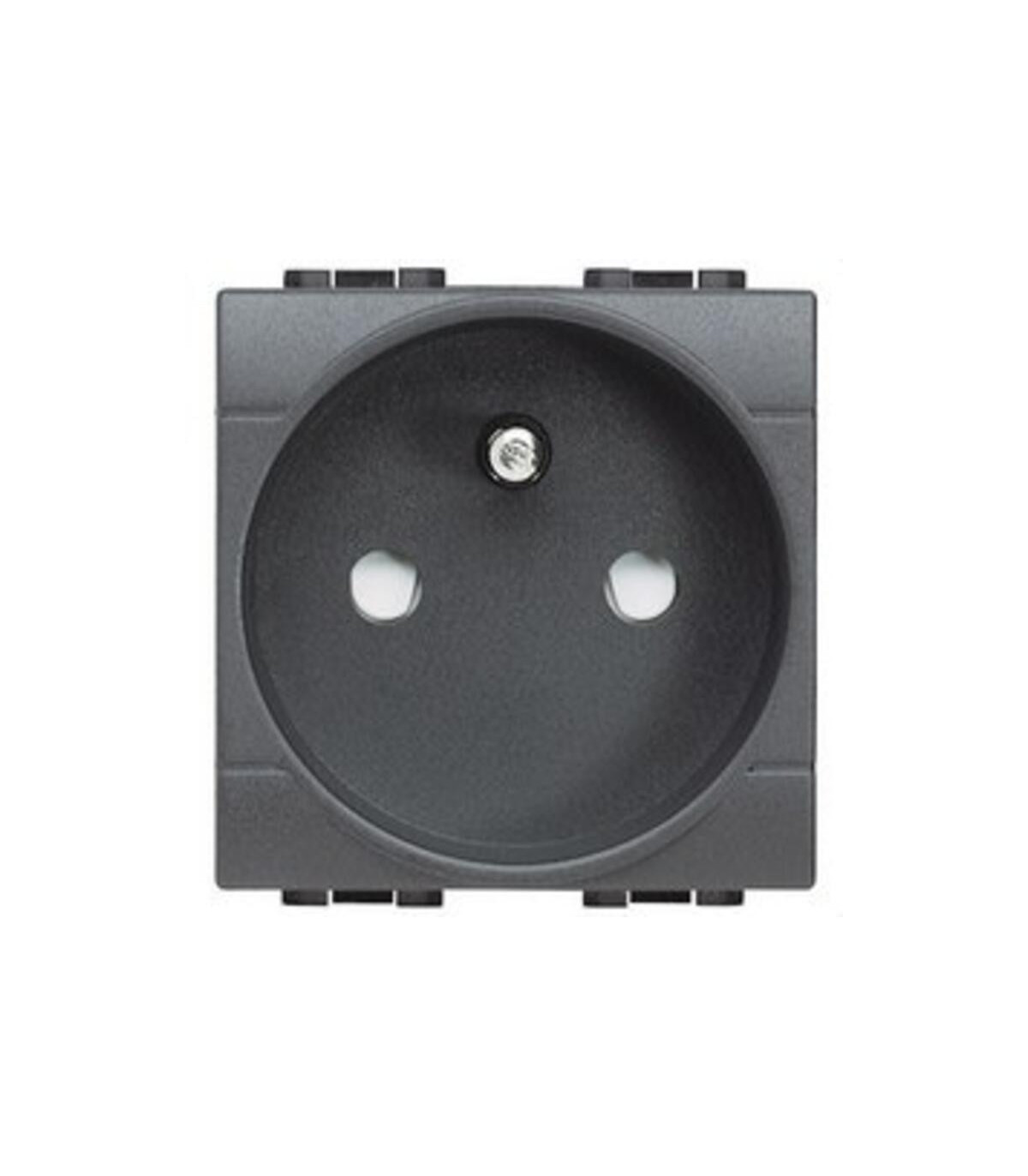 Prise 2P+T avec broche saillante, 16 A - 250 V. 2 modules. Anthracite. Connexion à vis. Livinglight. Livinglight : une gamme unique déclinée en trois finitions pour les interrupteurs : blanc, tech et anthracite. Trois modèles de plaques de finition : ronde, carrée et AIR. Toutes sont parfaitement interchangeables. Forme et fonction s’unissent dans une esthétique impeccable. Une élégante combinaison de formes, de couleurs, de matériaux et de surfaces pour satisfaire tous les goûts : minimaliste, sophistiqué, traditionnel et opulent. La prise Bticino LivingLight Anthracite 2P+T 10/16 A est conçue pour assurer des connexions électriques sûres et fiables dans les installations résidentielles et commerciales. Sa configuration à 2 pôles plus terre permet une alimentation sécurisée des appareils électriques, garantissant un rendement optimal sur les circuits de moyenne puissance. Sa conception assure la compatibilité avec les prises françaises standard et préserve l’homogénéité esthétique de la gamme LivingLight. Fabriquée avec des matériaux de haute qualité.