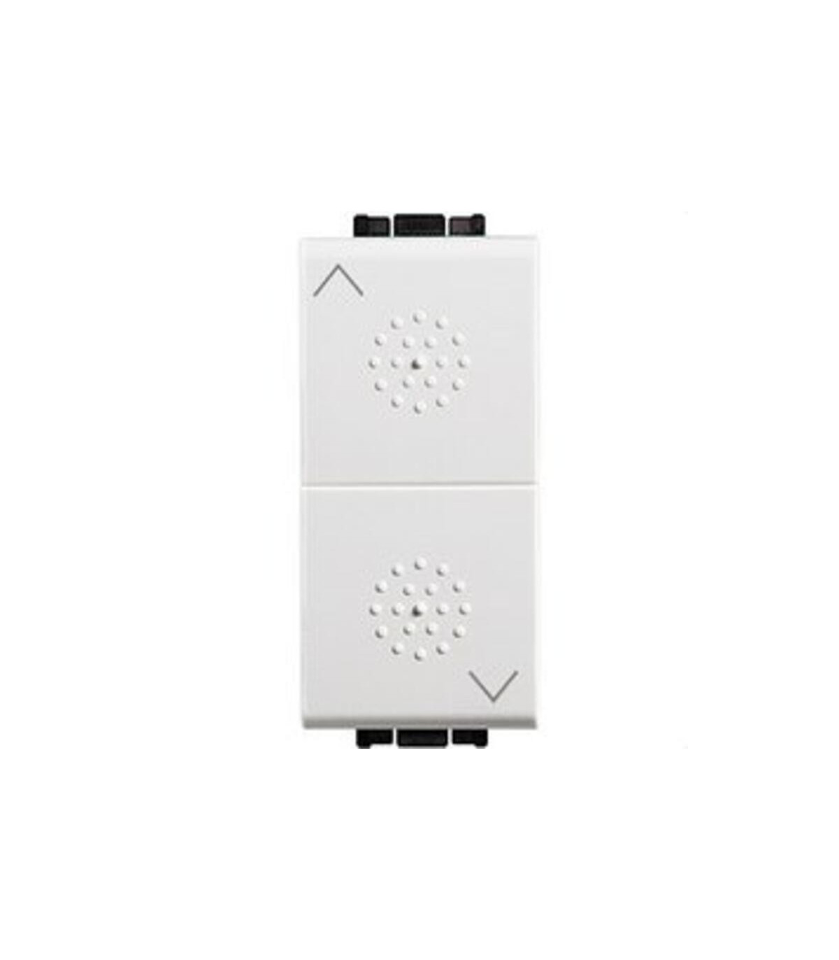 Interrupteur double 16 A 250 V pour stores. 1 module. Série LIVING LIGHT. Une pression pour activer, une autre dans le sens opposé pour désactiver. Couleur : Blanc. Série LIVING LIGHT. Une série unique déclinée en trois finitions : blanc, technique et anthracite. Trois modèles de plaques de finition : ronde, carrée et AIR. Toutes parfaitement interchangeables. Forme et fonction s'unissent dans une esthétique impeccable. Une élégante combinaison de formes, de couleurs, de matériaux et de surfaces pour satisfaire tous les goûts : minimaliste, sophistiqué, traditionnel et opulent. L'interrupteur double BTicino Light, de configuration 1-0-2 et d'une capacité de 16 A, est conçu pour commander deux circuits électriques indépendamment. Son système de verrouillage garantit un fonctionnement sûr et précis, empêchant les activations simultanées qui pourraient compromettre la sécurité du circuit. Cet interrupteur est idéal pour les applications d'éclairage domestiques, commerciales ou spécifiques.