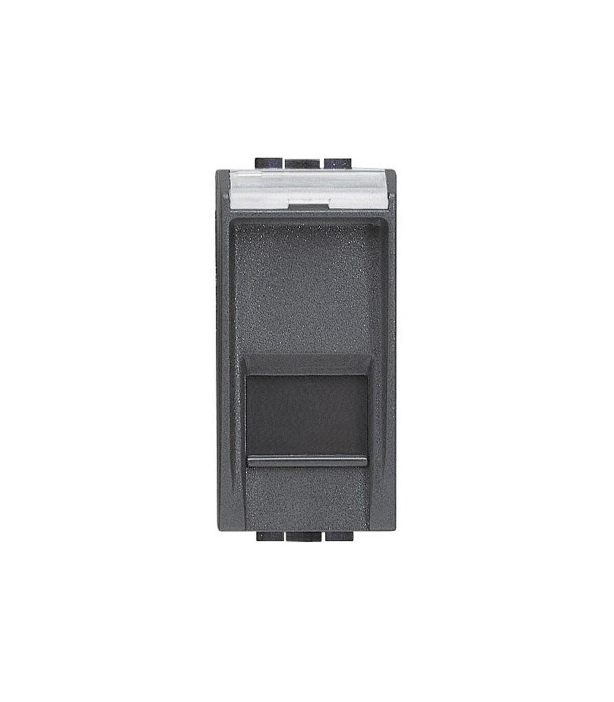 Connecteurs de données RJ-45 - Cat. 6 - UTP - 1 module - Anthracite. Livinglight - Connecteurs de données - Montage sur support et plaque - Connecteurs à connexion rapide sans outil - Contacts à code couleur. Le connecteur RJ45 BTicino BTNET Livinglight L4279C6 est un connecteur monomodule conçu pour les installations réseau résidentielles et commerciales. Appartenant à la gamme Livinglight International, il arbore une finition anthracite pour un style moderne et discret. Ce connecteur UTP de catégorie 6 est idéal pour la transmission de données haut débit sur les réseaux Ethernet.