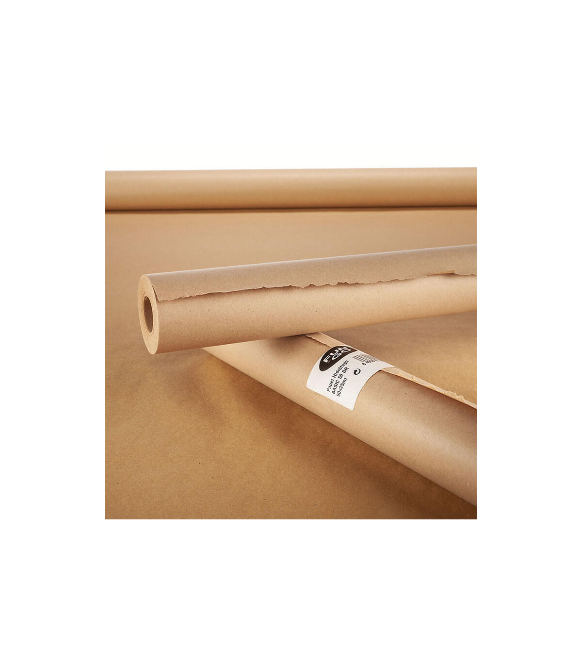 Papier de protection pour peinture FUN&GO. Papier kraft traité, 100 % recyclable et écologique. Haute résistance, 50 g/m². Utilisations : protection des plinthes, encadrements, portes, etc. Rouleau de 25 x 0,90 m.