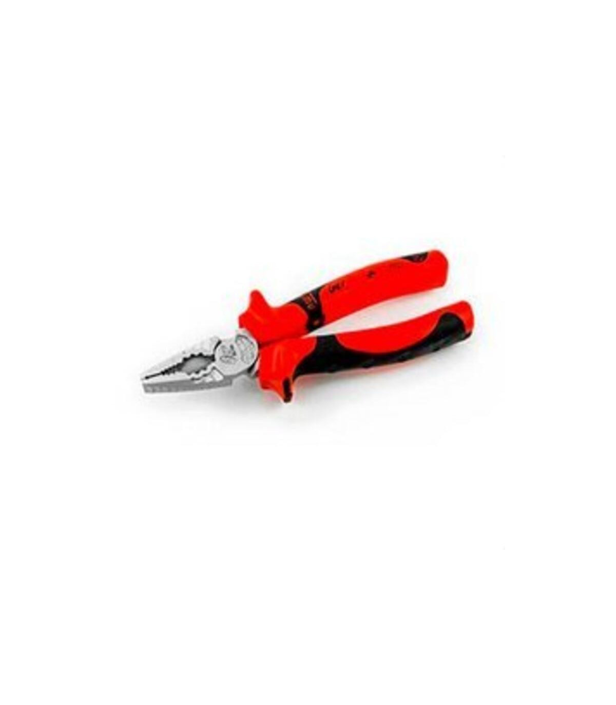 Pince universelle quatre fonctions avec poignée ergonomique pour une fermeture optimale. La pince universelle de 180 mm de HT-Instruments est un outil professionnel extrêmement polyvalent, indispensable pour les travaux d'électricité, de maintenance et de bricolage. Ses poignées ergonomiques antidérapantes offrent confort et sécurité lors d'une utilisation prolongée, réduisant la fatigue et améliorant le contrôle de la surface de travail. Grâce à sa conception robuste et à ses matériaux de haute qualité, cette pince garantit durabilité et résistance à l'usure, même dans des conditions exigeantes. Elle supporte les efforts importants, la torsion et la contrainte sans se déformer. Cette pince universelle permet de couper, dénuder, serrer et plier des conducteurs de différents matériaux et sections, idéale pour les installations électriques, les réparations industrielles et les travaux domestiques exigeants. Sa géométrie optimisée offre précision et sécurité, permettant de plier aussi bien les câbles que les fils.