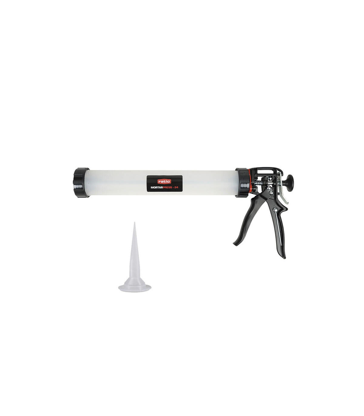 Produit temporairement indisponible. Nous vous contacterons pour confirmer la date de livraison. Système à double poussée pour mortiers haute densité et mastics haute viscosité. Corps en polypropylène translucide. Poignée en aluminium et gâchette en métal. Raccord rapide du piston sans outil. Tige de poinçonnage intégrée. Buse incluse. Vis de réglage pour réduire l'écartement des pistons.