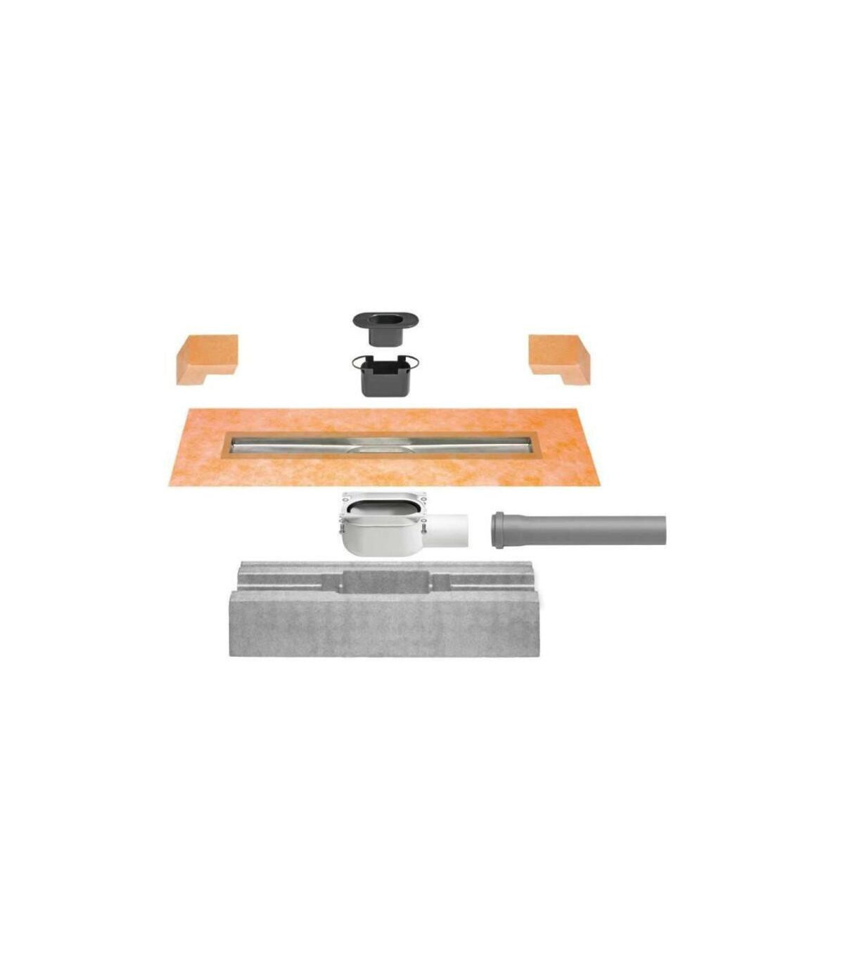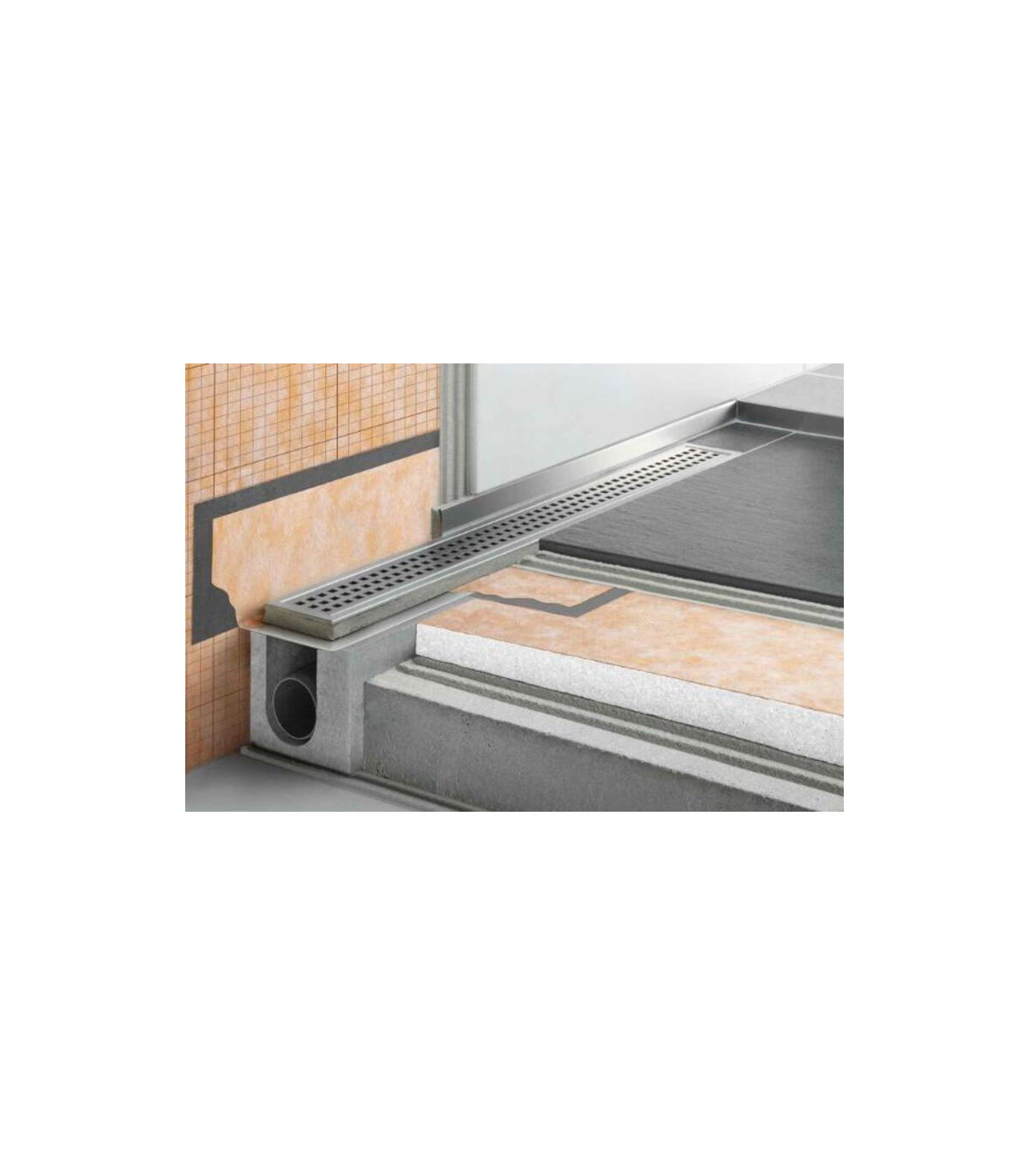 SCHLUTER KERDI-LINE, ensemble de siphon linéaire en acier inoxydable avec sortie horizontale