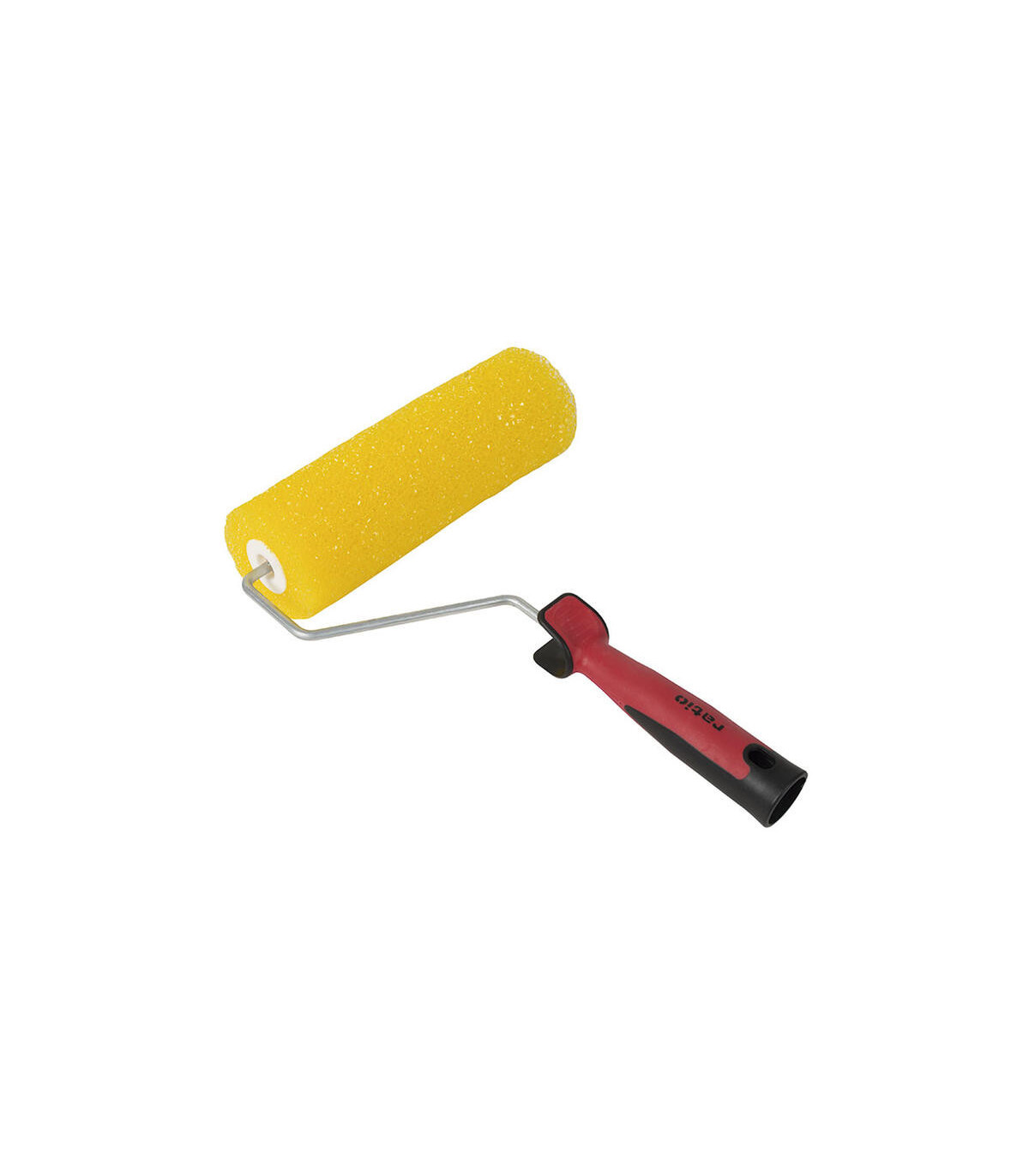 Rouleau en mousse RATIO Professional Series. Mousse de polyuréthane, 3 tailles de pores, base en polyester. Manche ergonomique bimatière rouge et noir. Tige en acier de 6 mm. Idéal pour les enduits texturés à grain moyen et les finitions stuc. Recommandé pour les peintures à l'eau. Forte capacité de charge. Rouleau de 22 cm. Cône de 50 mm.