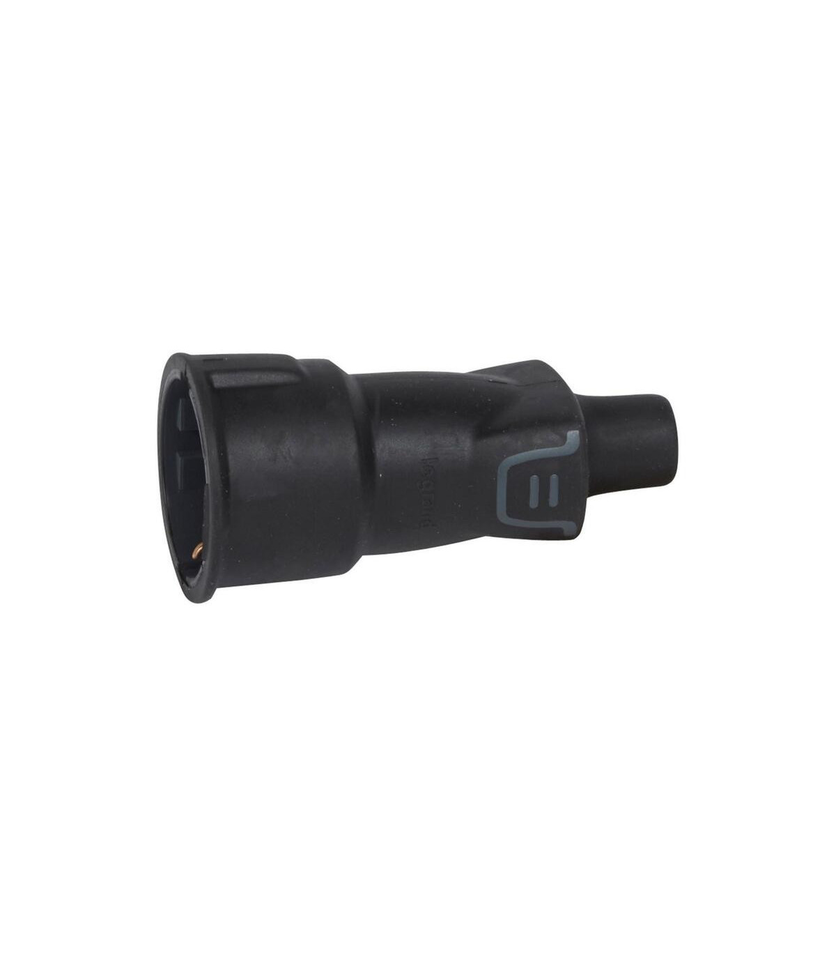 Prise bipolaire + terre, 16 A, en caoutchouc noir. Prise 2P+T - 16 A - Matériau robuste en caoutchouc noir pour applications exigeantes - Sortie de câble droite - Section de câble maximale : 3 x 2,5 mm² - Noir. Prises et fiches amovibles.