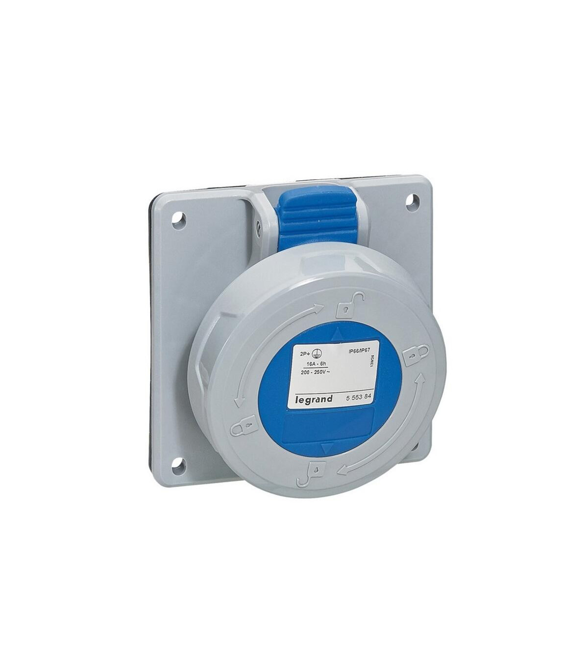 Prise carrée 32 A bipolaire + terre, 250 V, IP67. Prises pour montage sur panneau avec entraxe standardisé - Compatible avec les façades vierges ou perforées - Bleue 200/250 V~ - 2P+T - 32 A. P17 PRO - Prises et fiches industrielles - Conforme aux normes EN 60309-1 et 2 - IP66/67 selon EN 60529 - IK 09 (sauf prise murale IK 08) selon EN 62262 - Matériau : polyamide 6 - Auto-extinguible : 850 °C (parties en contact avec les parties sous tension) / 650 °C (corps). La prise carrée Legrand 32 A bipolaire + terre, d'une tension nominale de 250 V et d'une protection IP67, est conçue pour assurer une connexion électrique sûre et fiable dans les environnements industriels, extérieurs ou humides et poussiéreux. Sa conception robuste garantit une protection contre les projections d'eau, les chocs et autres dommages externes, assurant ainsi une alimentation électrique continue et la sécurité des équipements connectés. Ce socle est idéal pour les applications exigeant robustesse, durabilité et gestion efficace de l'énergie.