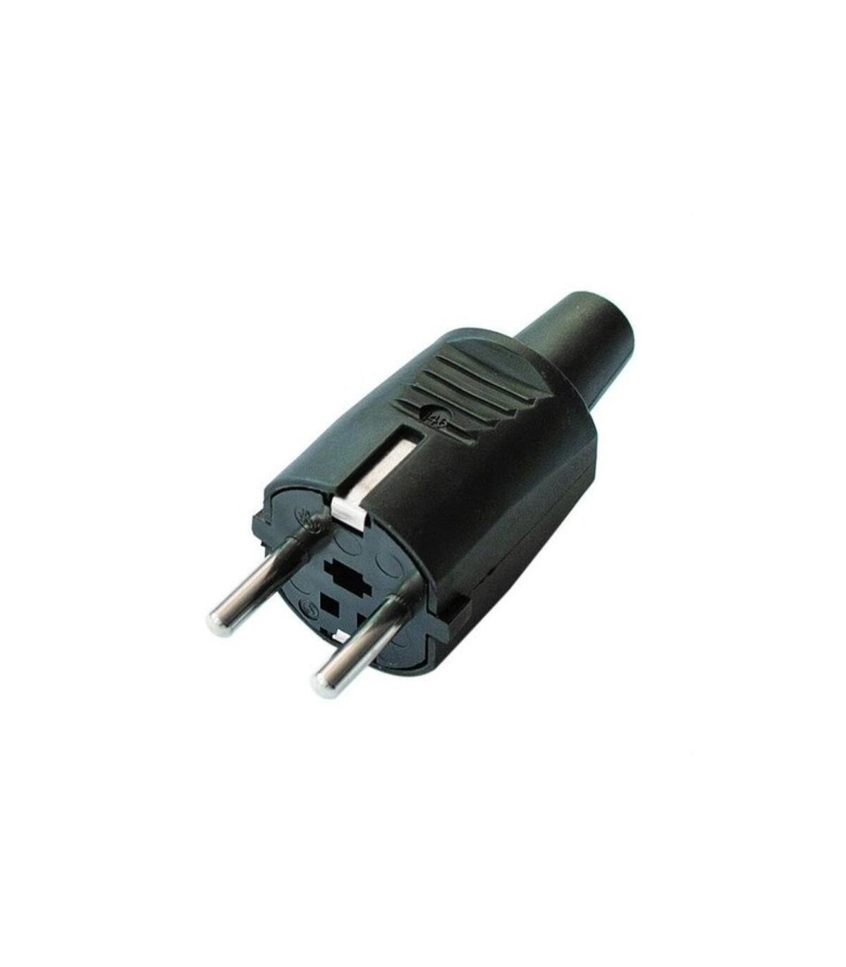 Fiche bipolaire en caoutchouc avec borne de terre latérale et entrée de câble droite. 16 A - 250 V. Noire. Cette fiche de terre en caoutchouc noir de type Schuko, d'une intensité nominale de 10/16 A, est un produit Fenoplastica. Conçue pour des connexions électriques sécurisées, cette fiche assure une excellente conductivité et une grande résistance à l'usure, ce qui la rend idéale pour les installations domestiques et industrielles nécessitant une protection contre l'usure. Sa construction en caoutchouc lui confère durabilité et flexibilité, facilitant son utilisation et renforçant la sécurité lors de la manipulation de l'électricité.