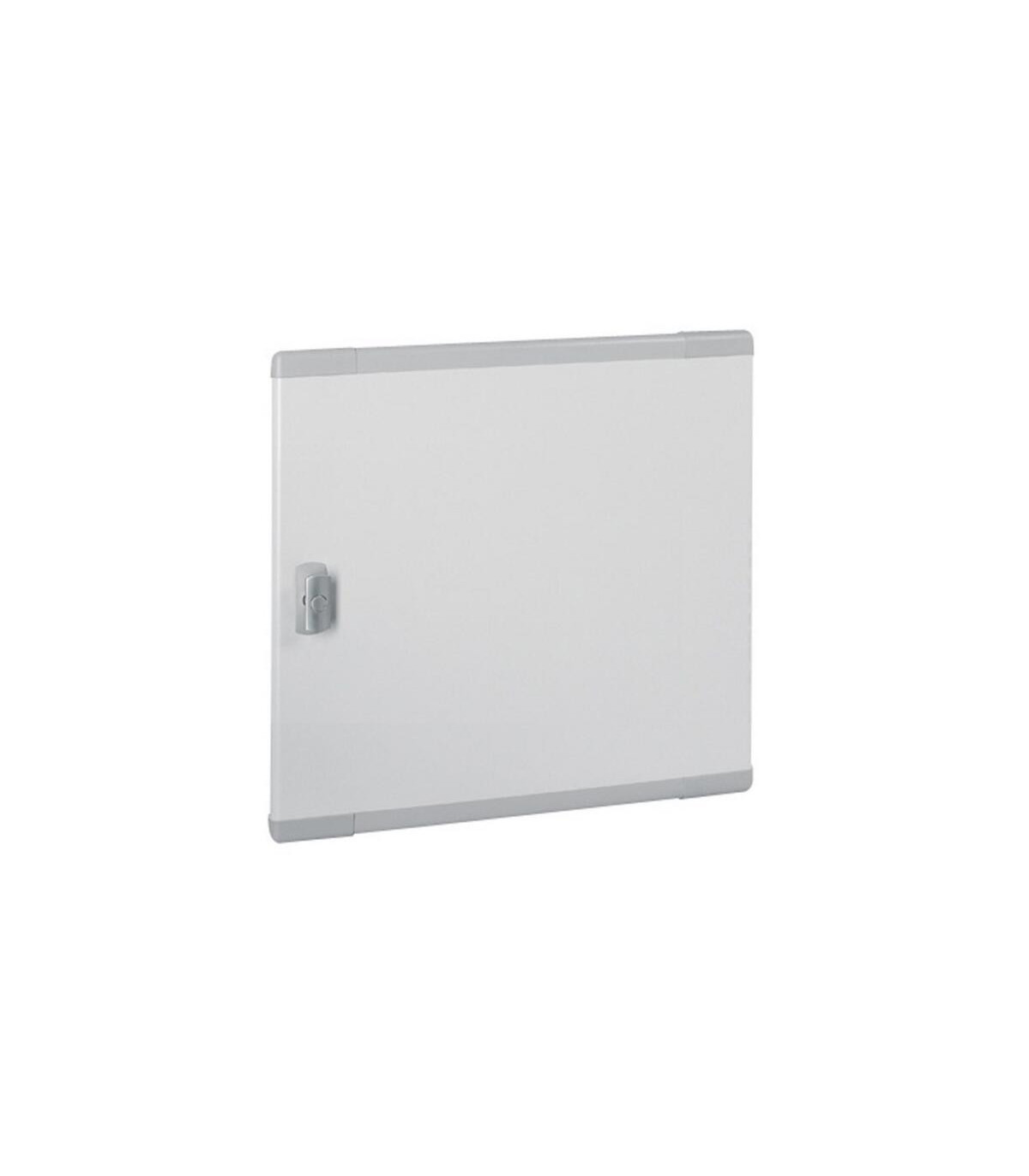 Porte extra-plate XL³ 160 450H. Portes - Fournies avec poignée à cylindres interchangeables - 2 points de verrouillage (haut et bas) (pour portes de 900 à 1050 mm de hauteur). Plate - Distance entre le couvercle du bornier et la porte métallique : 38 mm - verre : 34 mm - Non compatible avec la poignée frontale Vistop - Pour coffrets et armoires de hauteur 450 mm - Non compatible avec la poignée frontale Vistop - Métal. XL³ 160 - portes et accessoires.