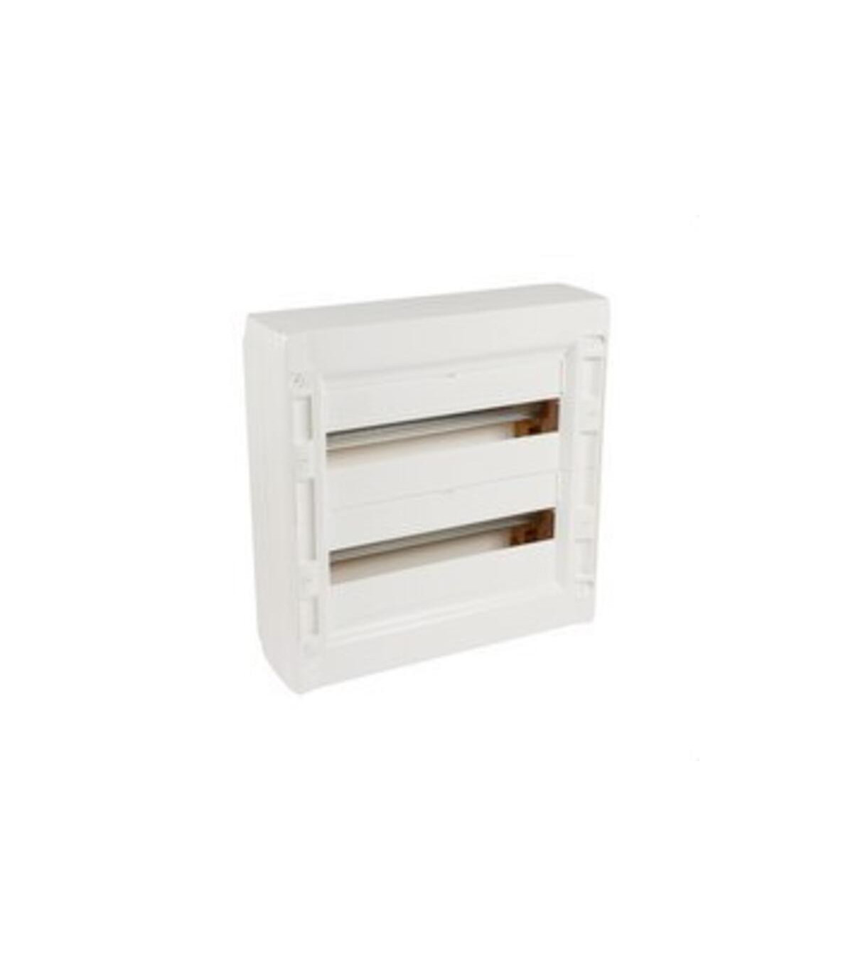 Boîte de montage en saillie 2x18 modules. Boîtes modulaires à 18 modules - Capacité : 18 modules par rangée - Blanc RAL 9003 - Boîtes entièrement réversibles (châssis, boîtier, porte) - Fournies avec : - Châssis amovible et pivotant équipé de rails DIN 2 positions (pour mécanismes modulaires ou DPX³160). Les rails sont amovibles individuellement sans outil. - Entrées de câbles (haut et bas) amovibles sans outil. - Plaques de verrouillage quart de tour, amovibles individuellement. - Étiquettes adhésives pour l'identification des circuits. - Bornes de terre. - Entraxe des rails : 150 mm. - Peut être équipée de plaques de montage perforées et de plaques de recouvrement de bornes vierges pour le montage de produits non modulaires (à partir de 2 rangées). - Fournie sans porte. Nombre de rangées : 2. Nombre de modules : 36. Hauteur : 450 mm. XL³125 - Boîtes modulaires en saillie de 18 à 70 modules - IP 40 - IK 09 avec porte - IP 40 - IK 08 sans porte - Classe II - Auto-extinguibles : résistance du fil