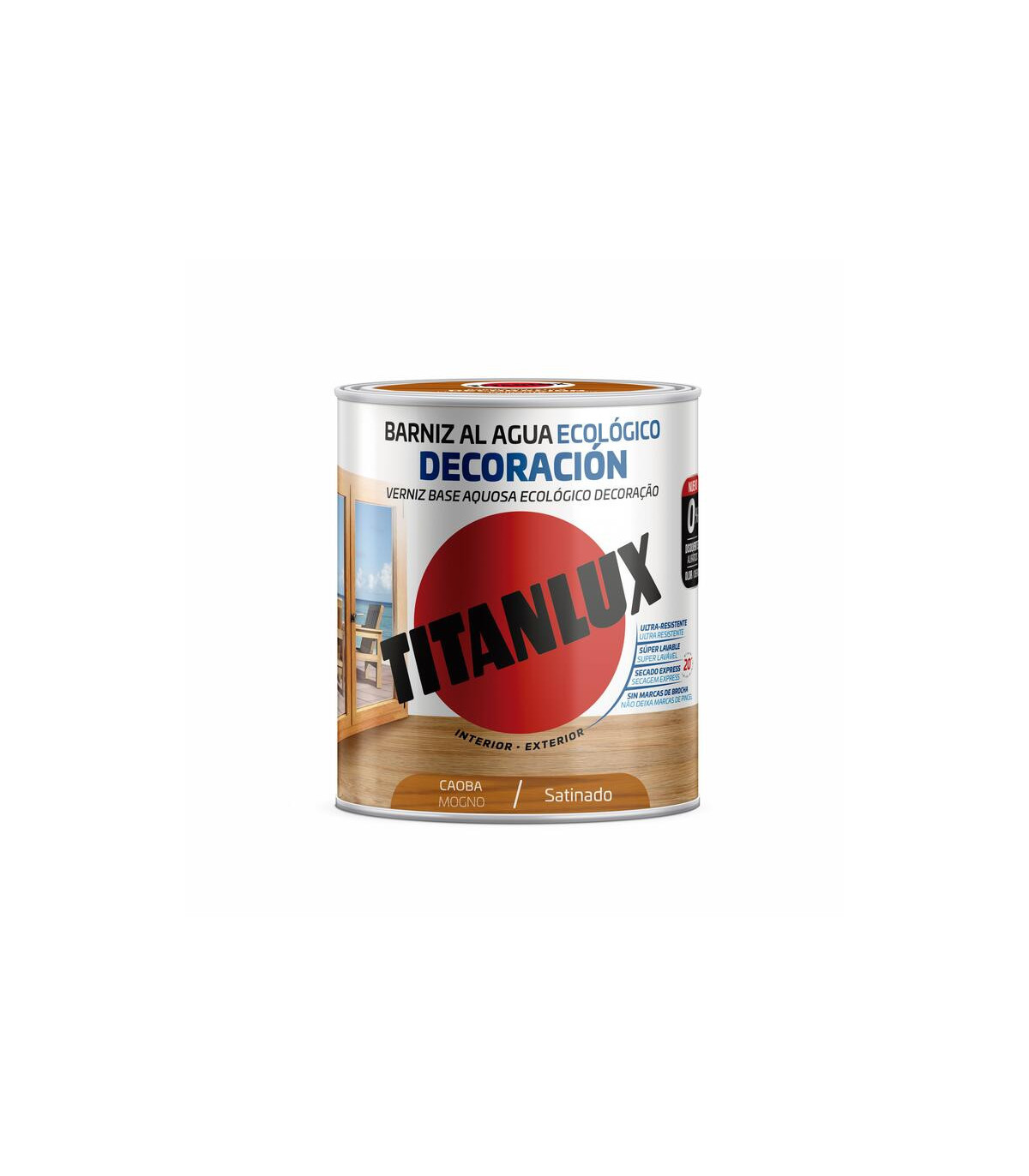 Vernis à l'eau écologique, finition satinée, présenté en bidon de 0,75 litre, spécialement formulé pour protéger et embellir les surfaces en bois d'intérieur. Sa composition respectueuse de l'environnement réduit les émissions de composés organiques volatils (COV), offrant une finition brillante et durable sans compromettre la santé ni l'environnement. Ce vernis de haute qualité offre une excellente résistance à l'usure, à l'humidité et à la décoloration, protégeant le bois et sublimant sa teinte acajou naturelle. Facile à appliquer au pinceau ou au rouleau, il sèche rapidement et permet une application en un temps record, pour une finition lisse, uniforme et d'aspect professionnel. Idéal pour les meubles, les portes, les moulures et tous types de menuiseries, il allie esthétique, protection et durabilité.